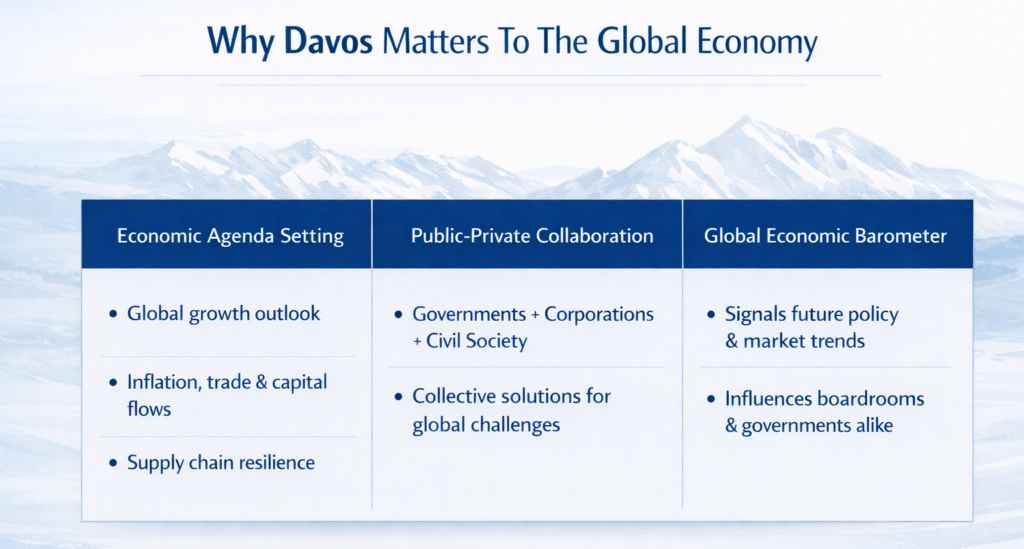 For emerging markets, Davos serves a unique purpose. It is one of the few places where a minister from Africa, a startup founder from India, a sovereign wealth fund from the Middle East, and a Fortune 500 CEO can have a real conversation without protocol or hierarchy.